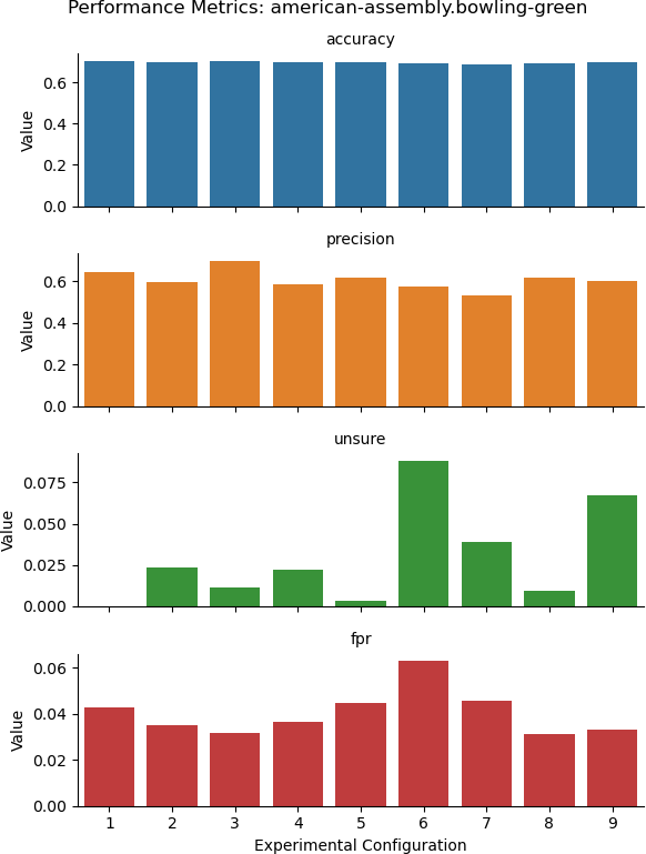 flowchart LR subgraph Metrics Accuracy Precision FalsePositiveRate UnsureRate end subgraph Tasks Classification ---> Accuracy & Precision & FalsePositiveRate & UnsureRate Classification[Classification: Spam Detection] end subgraph Variables TargetLabels[Target Labels] TargetLabels --> Classification %% TargetLabels --> ThreeClass[ACCEPT, UNSURE, REJECT] %% TargetLabels --> SevenClass[ACCEPT, UNSURE, \nSPAM, IRRELEVANT, \nUNPROFESSIONAL, SCOPE, COMPLEX] %% ThreeClass & SevenClass --> Classification ReasoningTechnique[Reasoning Technique] --> Classification Examples[Use of Examples] --> Classification end
